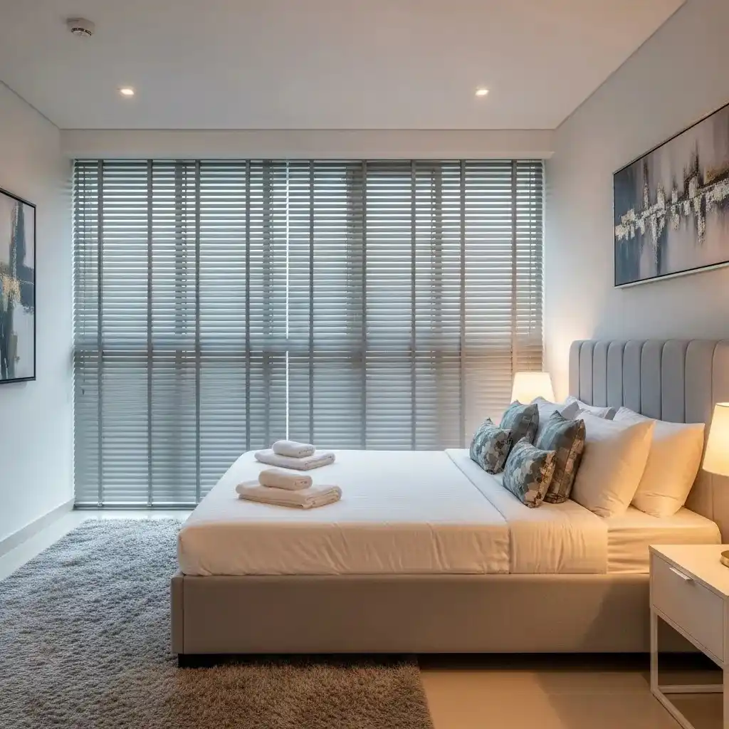 A large window or a glass sliding door looks better with window blinds. For such expansive surfaces, the suitable blinds are vertical blinds, motorized roller blinds, and panel blinds. Such window blinds offer coverage, better light control, and are quite easy to control. For a modern Dubai residential and commercial space, such blinds offer better aesthetics.