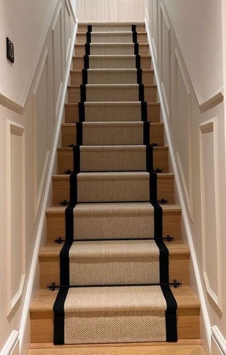 Instead of full coverage of your stair steps, we introduce you to the individual carpet pieces for every step. These bespoke carpet treads come in a variety of options, such as pre-cut shapes or custom-sized for your staircase steps. We have a variety of fabrics for you to choose from, in nylon and luxury wool or silk. They are perfect for any modern home, offering a touch of luxury and sophistication.