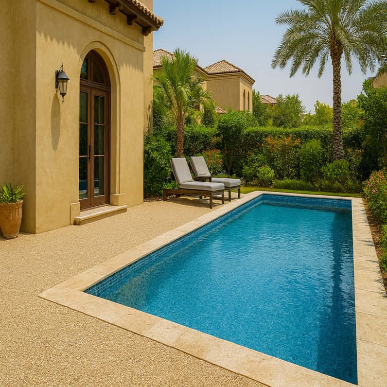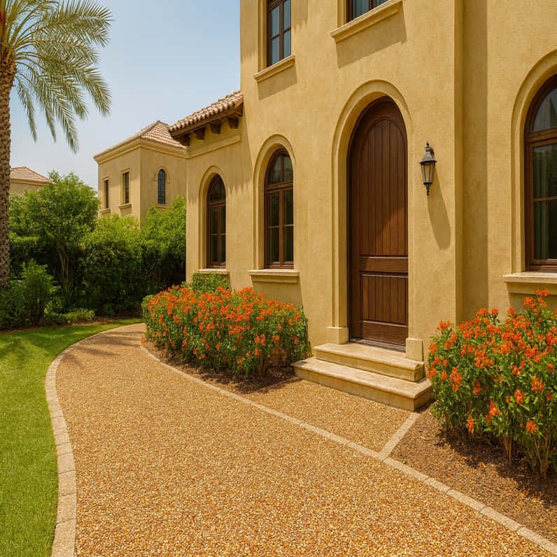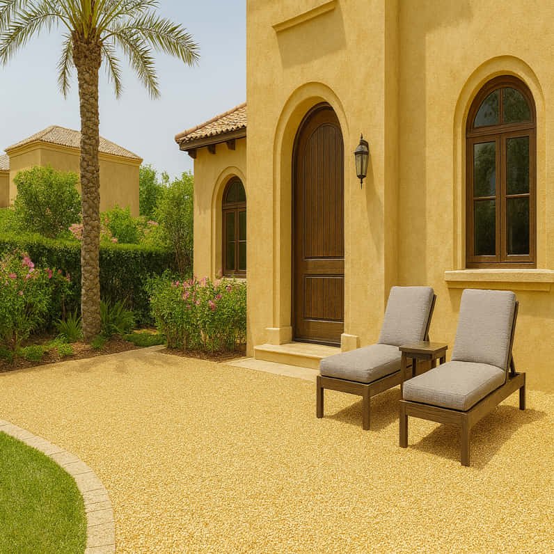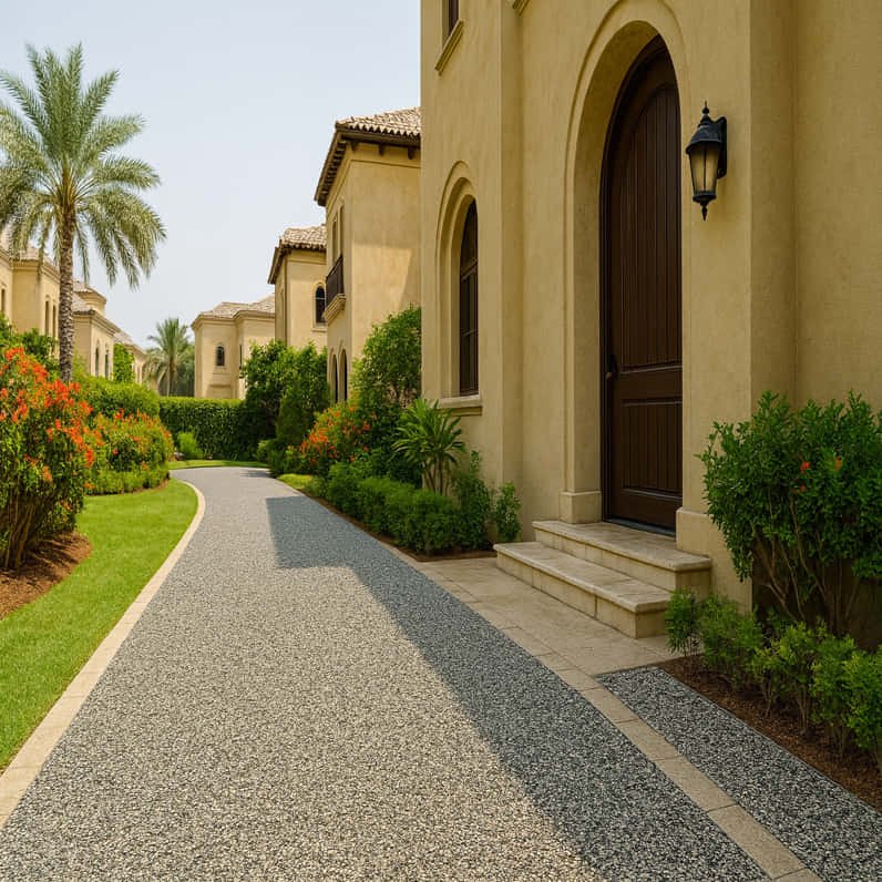 At Fixit Home, the top-rated supplier of these stone carpet solutions, we offer a wide range of solutions for both residential villas to public outdoor spaces. We craft each resin bound stone carpet solution custom-made, offering your space non-slip, water-resistant, and aesthetic properties. Each of these stone floor coverings is made to meet the highest UAE standards. Our granite, marble, and quartz blends with a premium epoxy binder add a decorative touch that is highly durable.