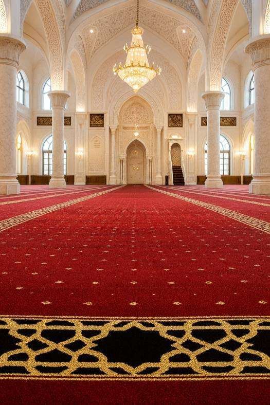The Al Isra Mosque Carpet is a majestic flooring solution designed for grand and revered prayer halls, offering a foundation of deep comfort and enduring quality. It features Ultra-High Density Woven Cut Pile construction, delivering an exceptionally plush underfoot feel and supreme resistance to heavy institutional traffic. The ornate, classical design incorporates clearly defined Saff (prayer-line) markers, ensuring precise alignment and order during worship. Crafted from premium, durable fibers, Al Isra provides excellent acoustic dampening and maintains its luxurious appearance for decades. Its seamless broadloom installation creates an unbroken expanse of color and pattern, honoring the vastness of the sacred space. For the ultimate investment in durable, luxury broadloom Carpet Tiles Dubai (or premium mosque solution), Al Isra sets the gold standard. Maximum acoustic comfort and long-term durability.