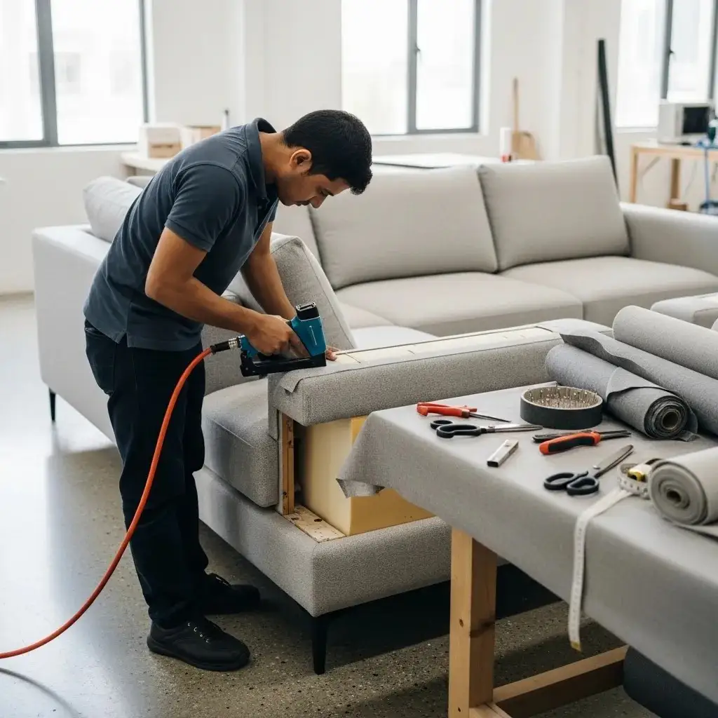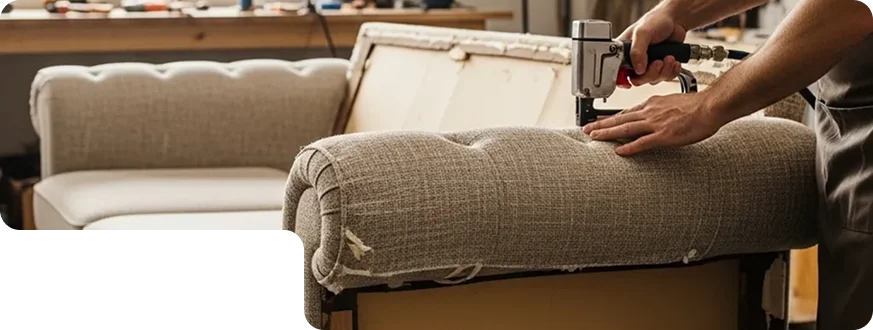 Our sofa upholstery work process is detailed and planned. Our expert upholsterers will first inspect the sofa frame, springs, and old padding to check the extent of repairs needed. These professionals will remove existing fabric and damaged foam without affecting the structure. A joinery expert will repair weak joints and reinforce support areas for prolonged stability.
